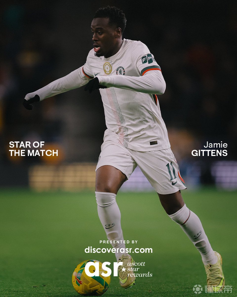 1球2助,吉滕斯当选与狼队一役切尔西队内最佳球员